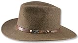 The men's traditional drover's-style wool hat is designed to keep sun out of your eyes and rain off your face (even when the weather conspires to make the switch from one to the other without warning). Our men's hat, crafted in America of heathered pure wool, features a comfort-stretch headband for an ideal fit. Leather-and-feather hatband. Men's classic drover's hat in olive brown. Pure wool. Wipe clean. USA.Sizes: S/M(6¾-7 1/8), L/XL(7¼-7 5/8). 3¼" brim with a 4" crown.