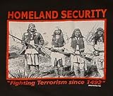 Men's 3X T-shirt taking a look at the history of United States Homeland Security through a Native sensibility.