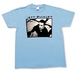 Blue Adult T 1 sided T-shirt printed on baby blue 100% cotton, short-sleeved design shirt with black and white photograph of Jeff on the front of shirt.