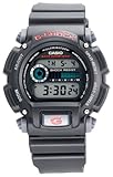 The simply designed Casio G-Shock Classic digital watch for men offers shock resistance that's great for your most vigorous sporting activities. The durable rectangular black watch case measures 45mm wide (1.77 inches), and it's matched to a comfortable black resin sports strap. The face has two windows that show time (bottom) and date (top) as well as a circular display for the stopwatch function, which can measure events down to 1/100 of a second for the first 60 minutes (and down to 1 second from 60 minutes to 24 hours). It also offers elapsed and split time modes, and 1st-2nd place times, and it includes a countdown timer with a 24-hour range. Other timekeeping features include a multi-function alarm, hourly time signal (which can be turned off), and 12/24-hour formats. This timepiece also features an Auto Calendar (pre-programmed until the year 2039), ±15-second accuracy per month, Afterglow backlighting, and water resistance to 200 meters (660 feet)--which will stand up to the rigors of recreational scuba diving.
