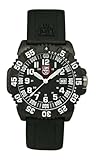 Perfect for low-light or no-light situations, the Luminox Men's Navy SEAL Colormark watch glows 100 times brighter than other luminous watches, which allows for easier visibility. This timepiece This versatile timepiece is constructed with a 43.9-millimeter polyurethane case and matching durable polyurethane band, which includes a buckle clasp. Eye-catching white Arabic numerals contrast with the classic black dial, while smaller white numerals mark the 24-hour clock. In addition, a handy date calendar rests at the three o'clock position, and the unidirectional textured bezel features popping-white minute indexes for easy readability. Powered by analog-quartz movement and protected by a durable mineral dial window, this watch is preferred by US Navy SEALs and US Air Force Pilots, and is water resistant to a depth of 660 feet.